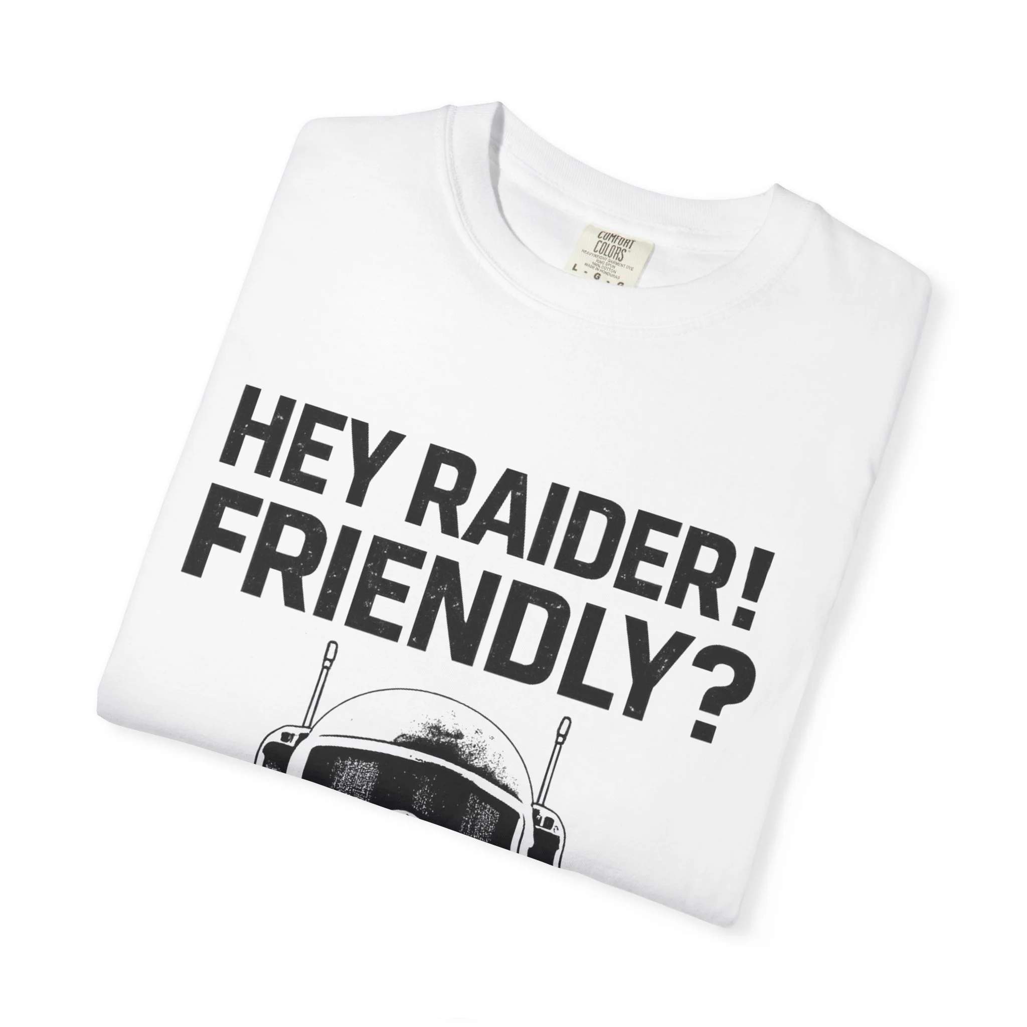 Hey Raider Friendly? T-Shirt — Tactical Helmet Graphic Tee